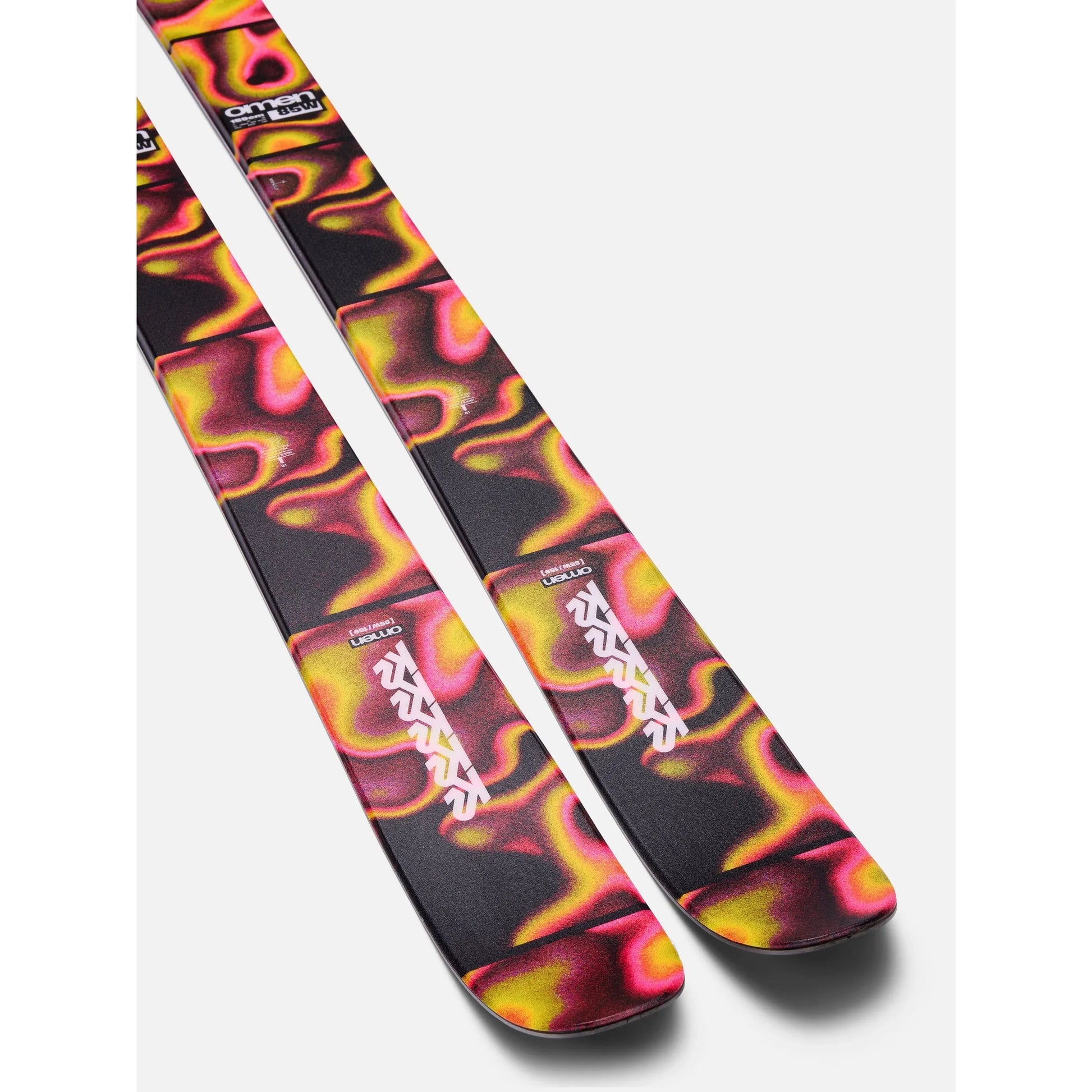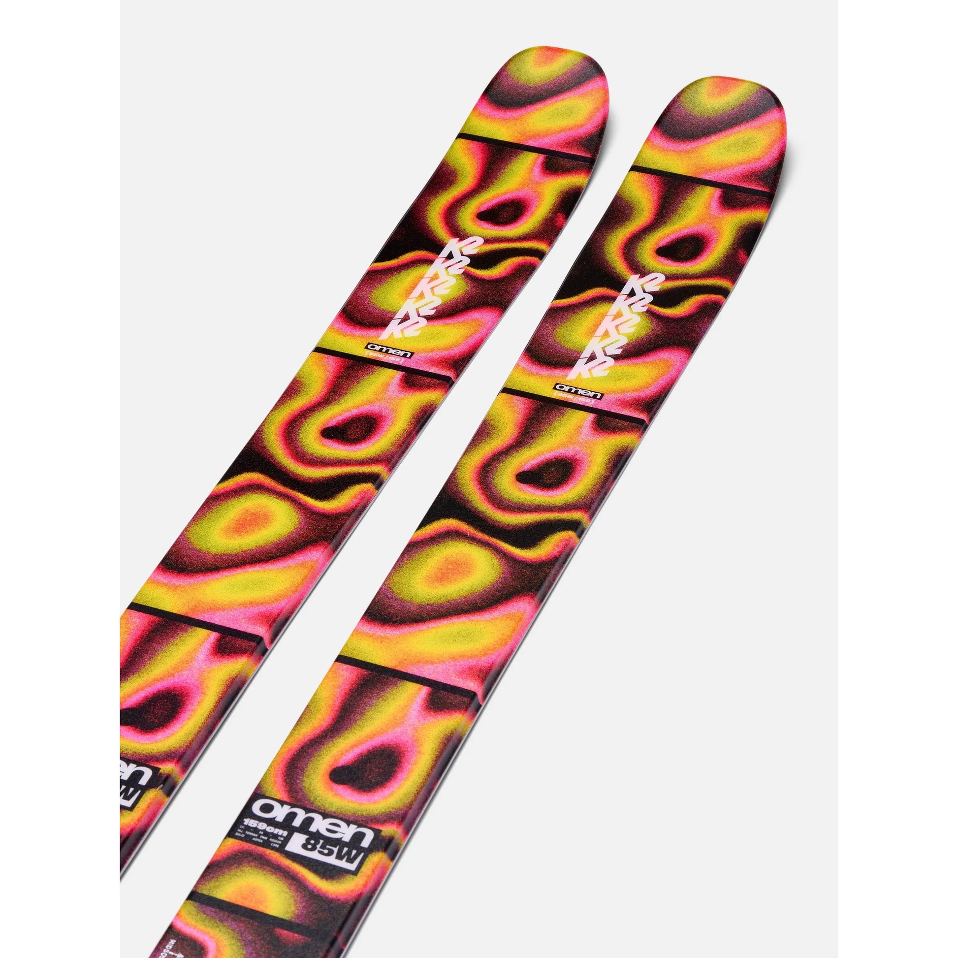Built to take a beating and come back swinging, the Omen 85 W is K2’s no‑nonsense entry‑level freestyle twin. Ideal for riders new to the park or anyone who just likes to get creative it blends serious durability with lively pop thanks to DuraCap construction and a Triaxial Braided Core. Backed by an Aspen wood core and carbon stringers this ski stays light, snappy, and shock-resistant through rails, landings, or laps through the terrain park.